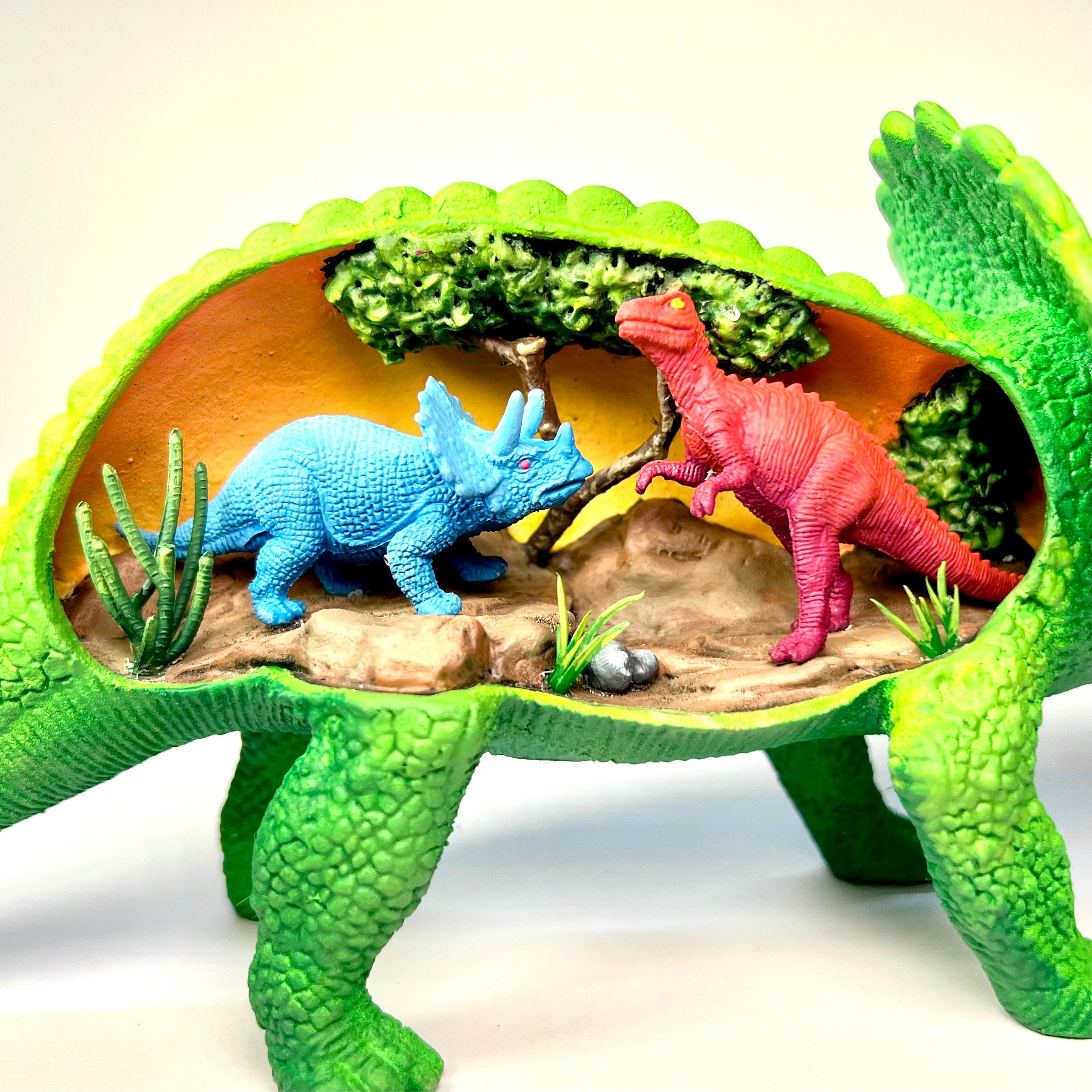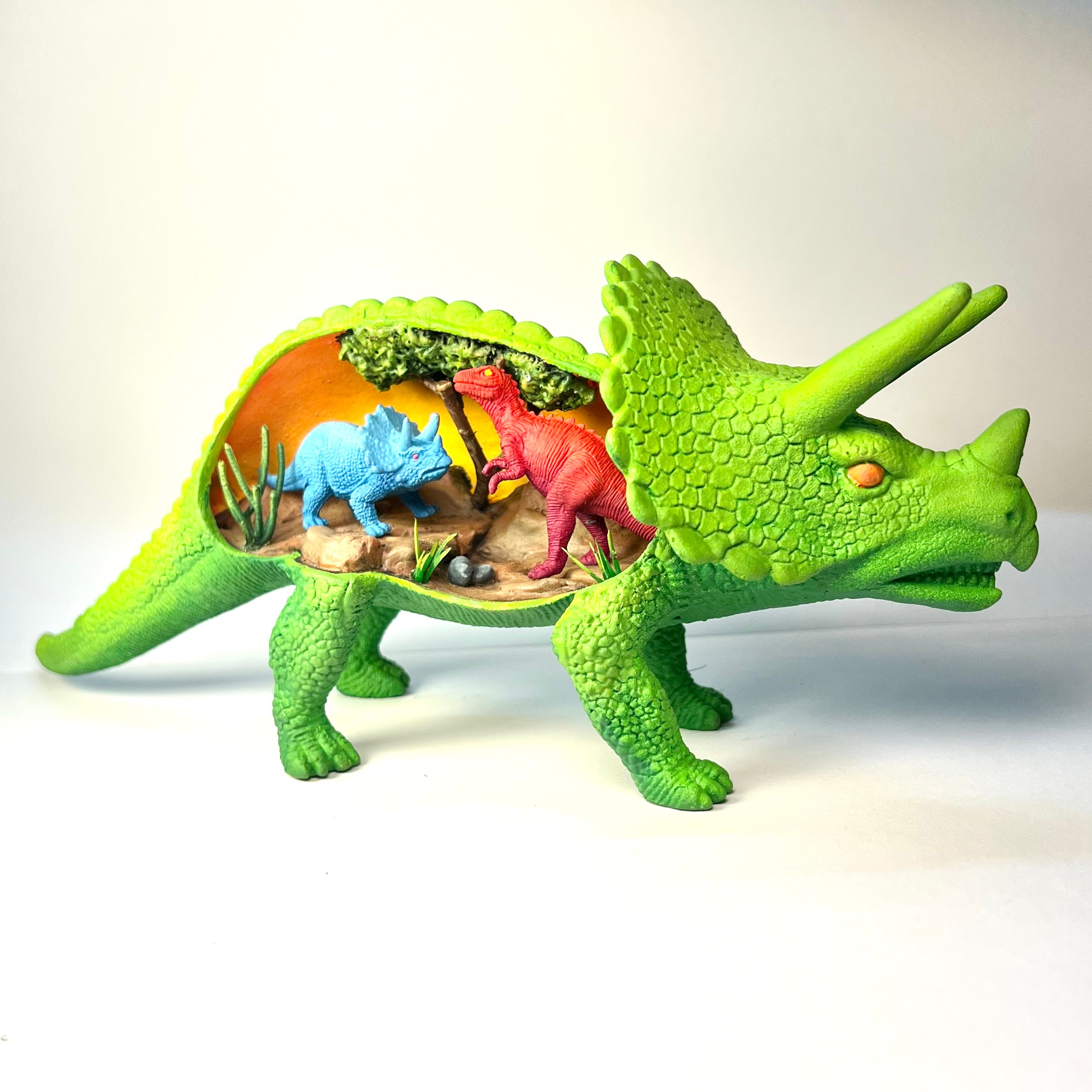 Though it may resemble toys from your childhood, it is a hand assembled, sculpted and, painted work for display and may not play well with the rest of your toys.
