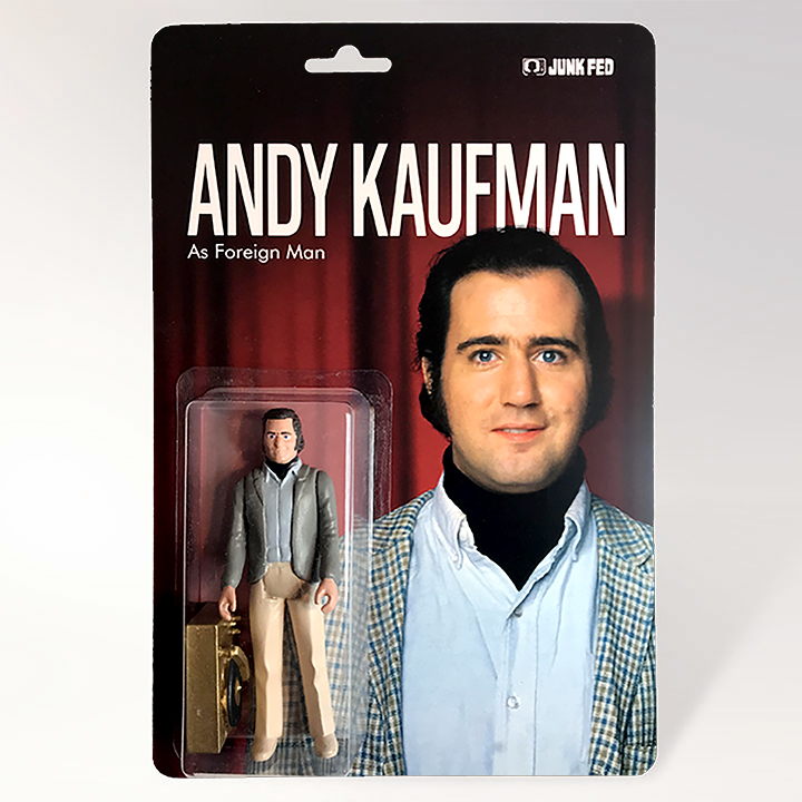 Each Andy Kaufman figure and record player accessory is individually hand cast, assembled, painted, and finished.
