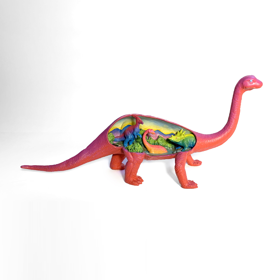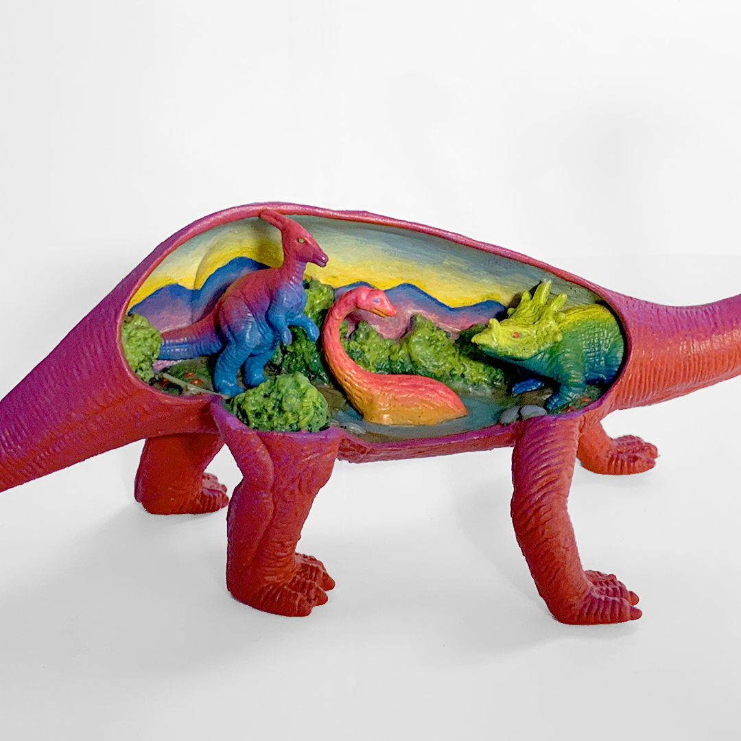 Dinosaurs within dinosaurs. Inspired by the imaginative yet inaccurate depictions of dinosaurs from a less-enlightened era.