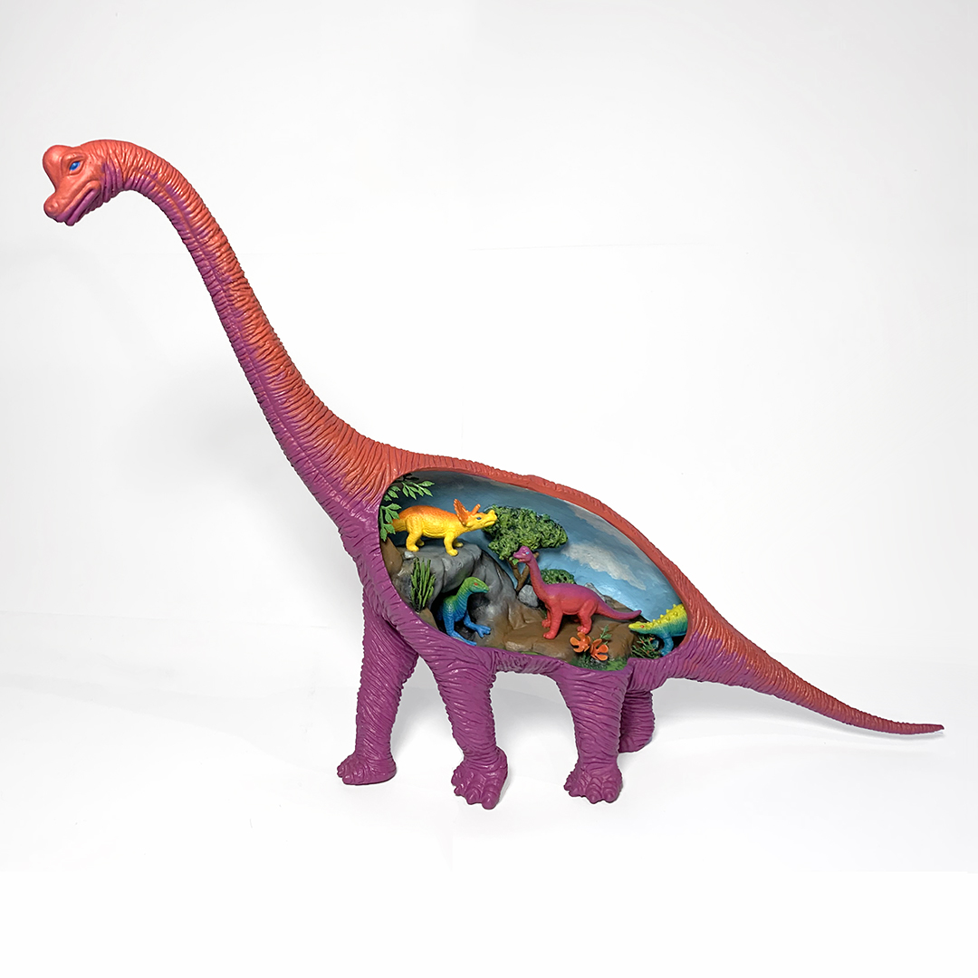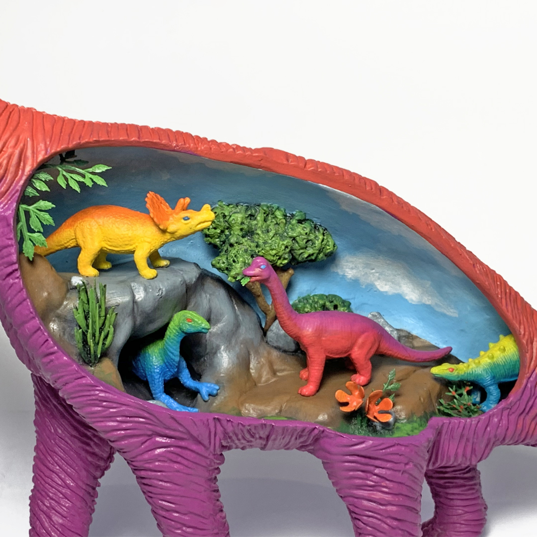 Dinosaurs within dinosaurs. Inspired by the imaginative yet inaccurate depictions of dinosaurs from a less-enlightened era.