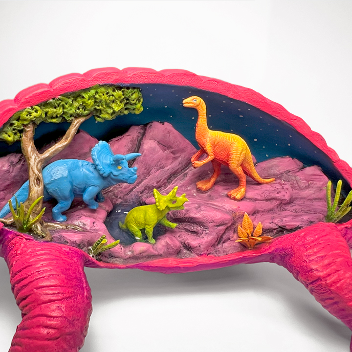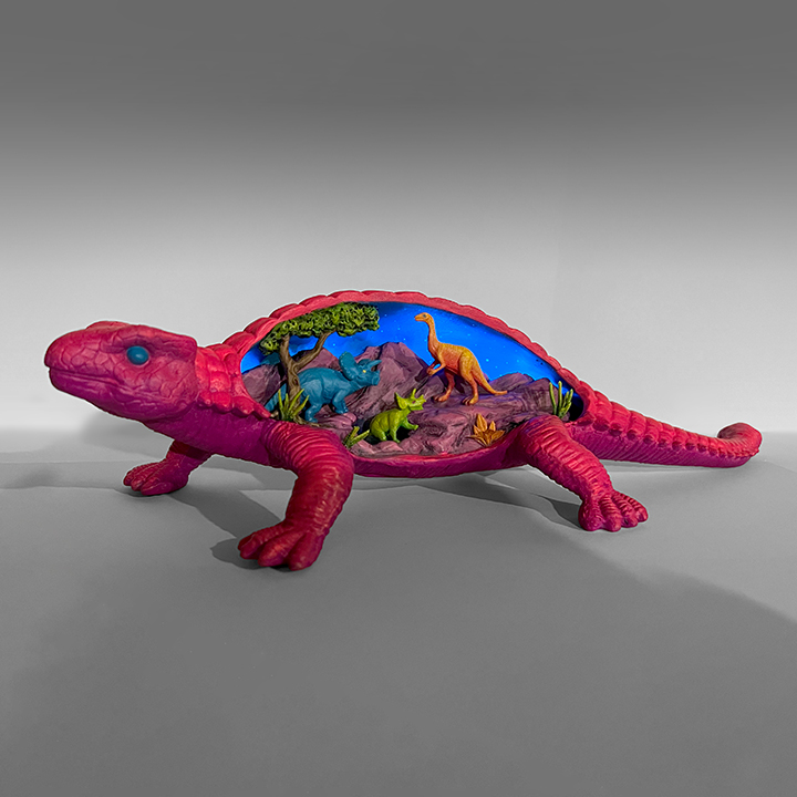 Though it may resemble toys from your childhood, it is a hand assembled, sculpted and, painted work for display and may not play well with the rest of your toys.