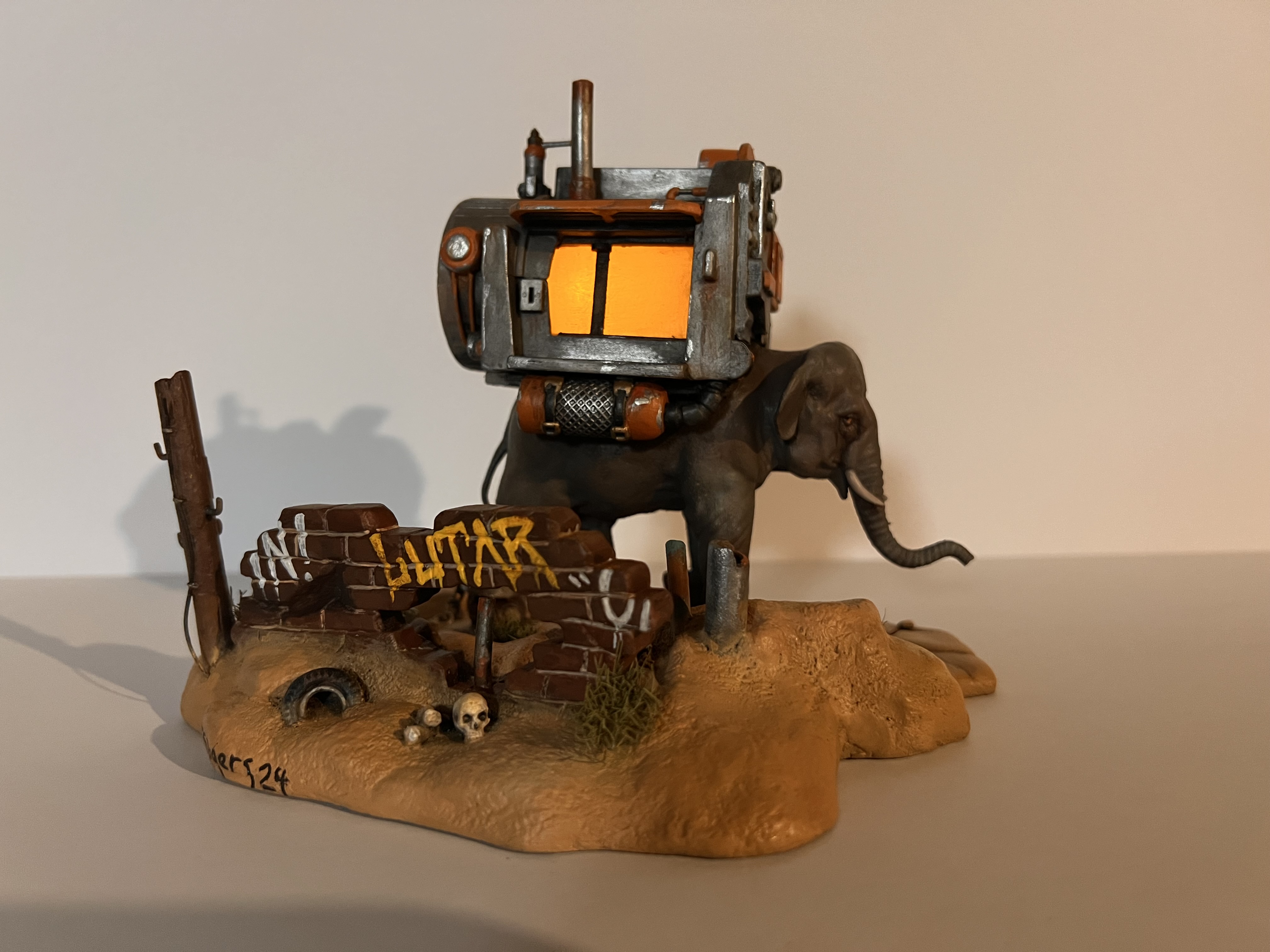 Mixed media, 7” tall x 8” wide x 6” deep.